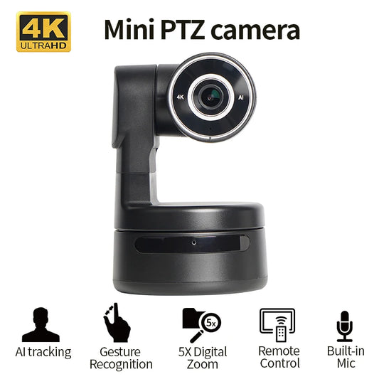 MINI 4K PTZ Webcam AI Tracking Gesture Recognition Control Built-in Mic USB Video Camera for Laptop Live Streaming