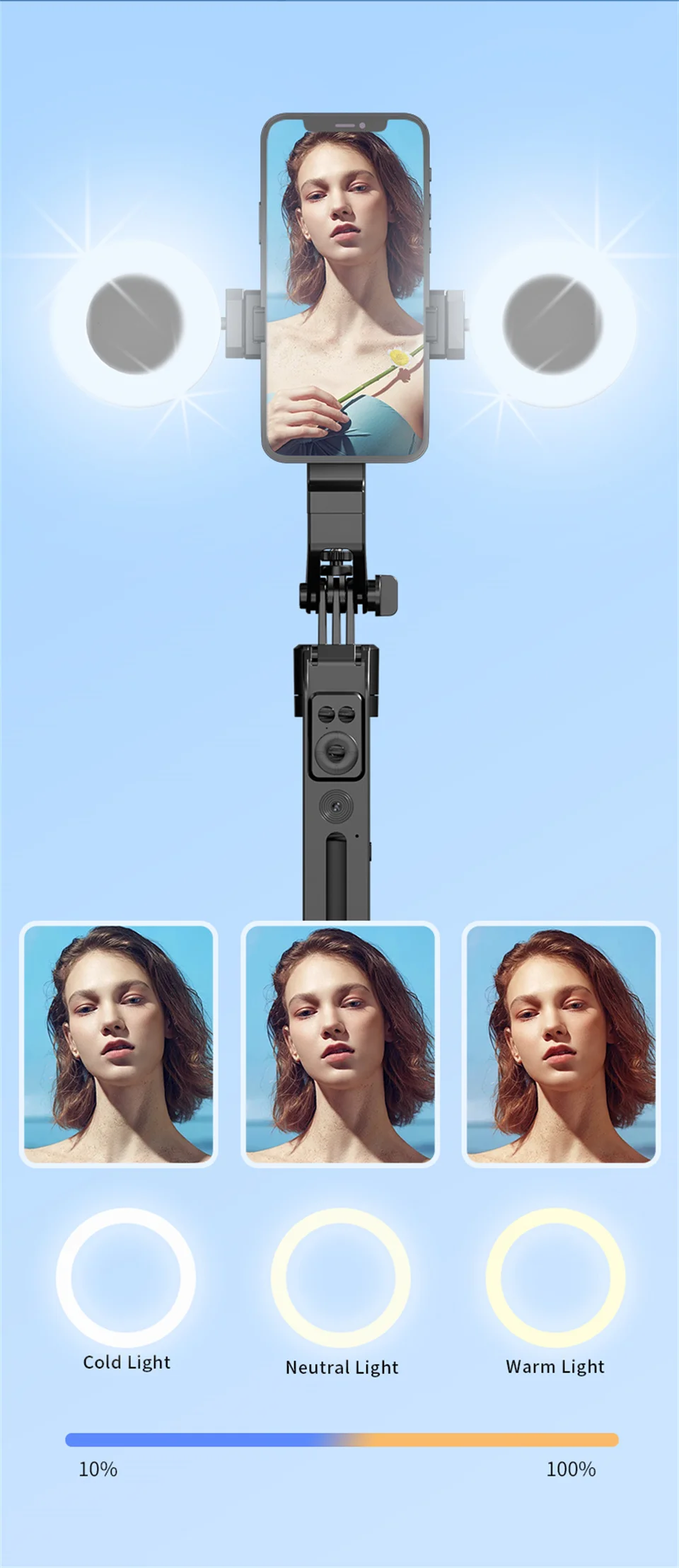 COOL DIER 2025 NEW Gimbal Stabilizer Wireless Selfie Stick Foldable Tripod Holder With Bluetooth Shutter Monopod For IOS Android
