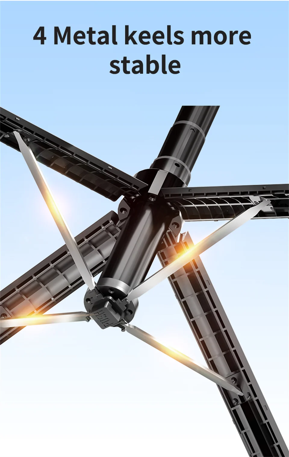 2. Stable quadrapod, Structural support is solid and does not sway.