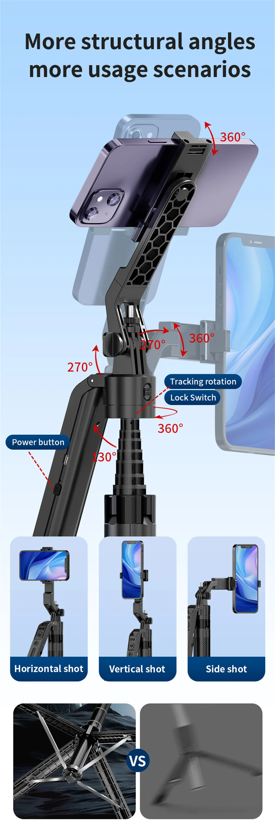 3. Balanced handle, 360° panoramic shooting.