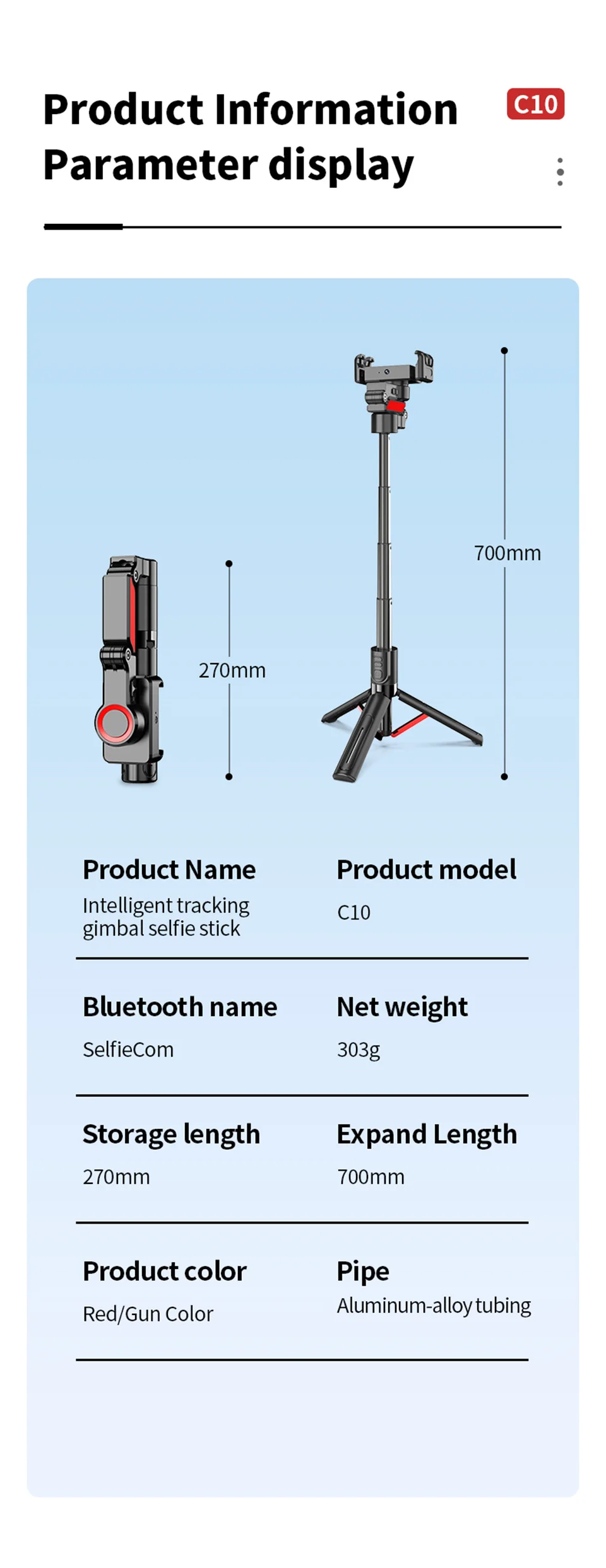 4. High-end stable aluminum alloy rod, non-slip mobile phone clip, stable tripod.